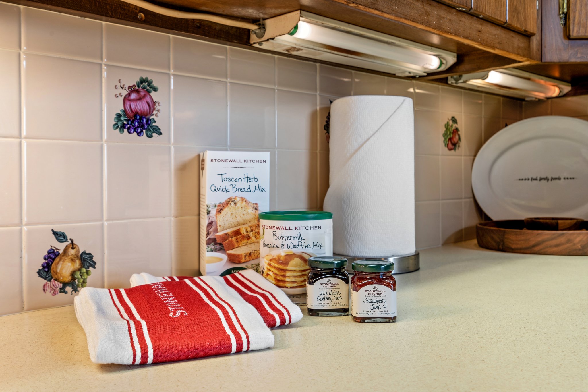 The home features two bathrooms for your convenience. The main floor bathroom includes a shower/tub combo—ideal for quick showers or a relaxing soak. The second bathroom is located in the master bedroom and offers a walk-in shower. Both are stocked with fresh towels, essential toiletries, and a hairdryer to make your stay comfortable.